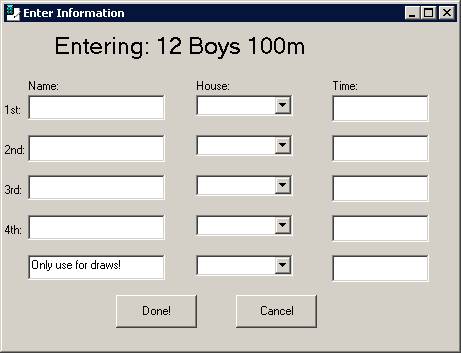 12 Boys 100m is the event that is being entered. When started, the cursor will