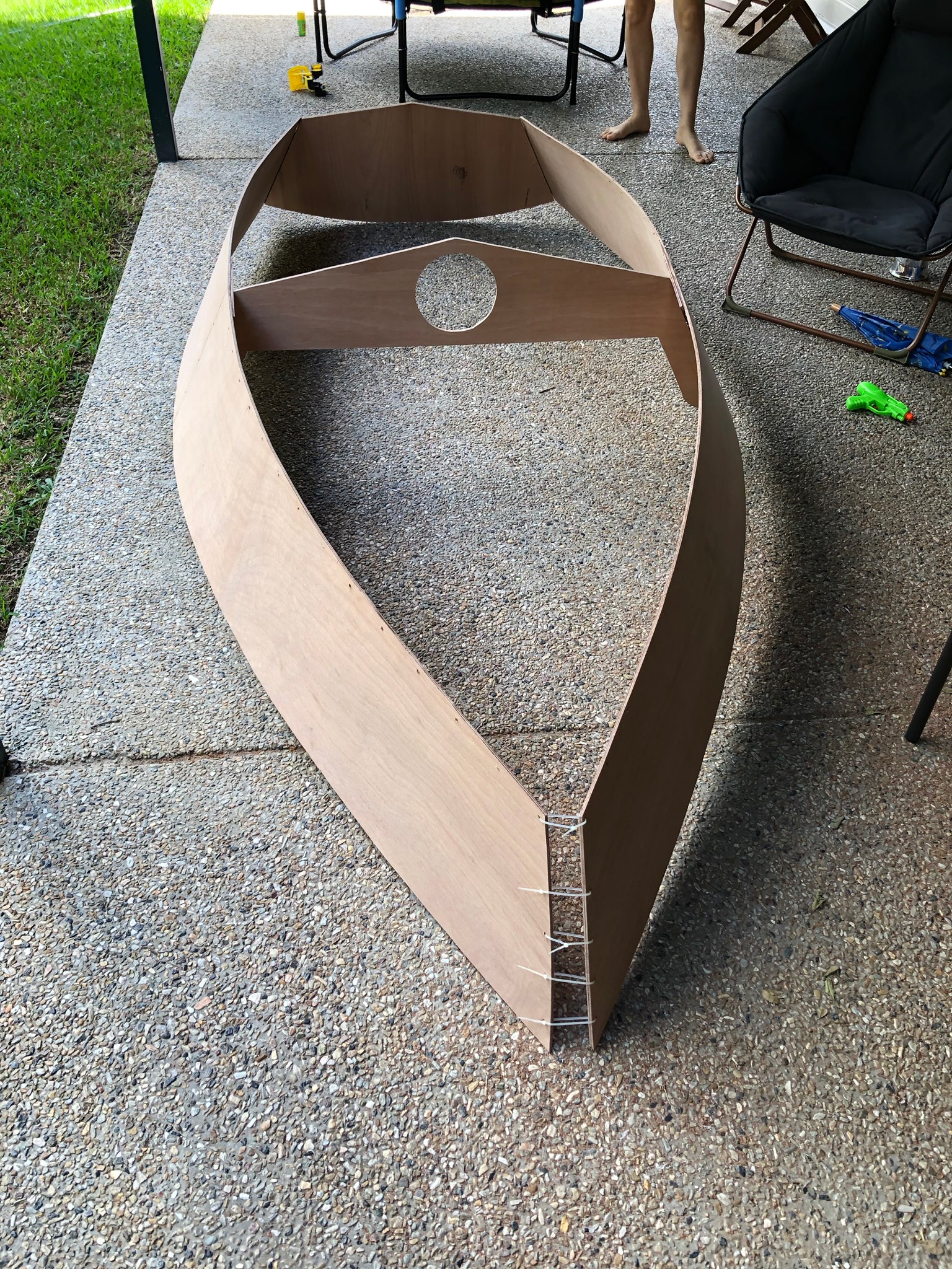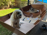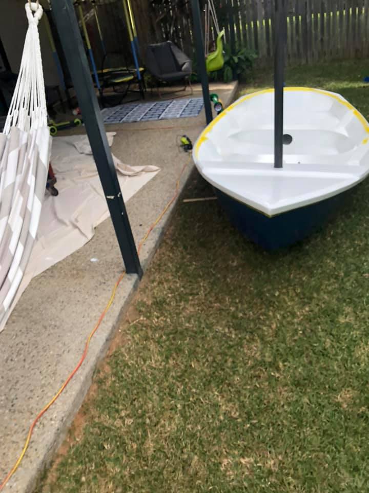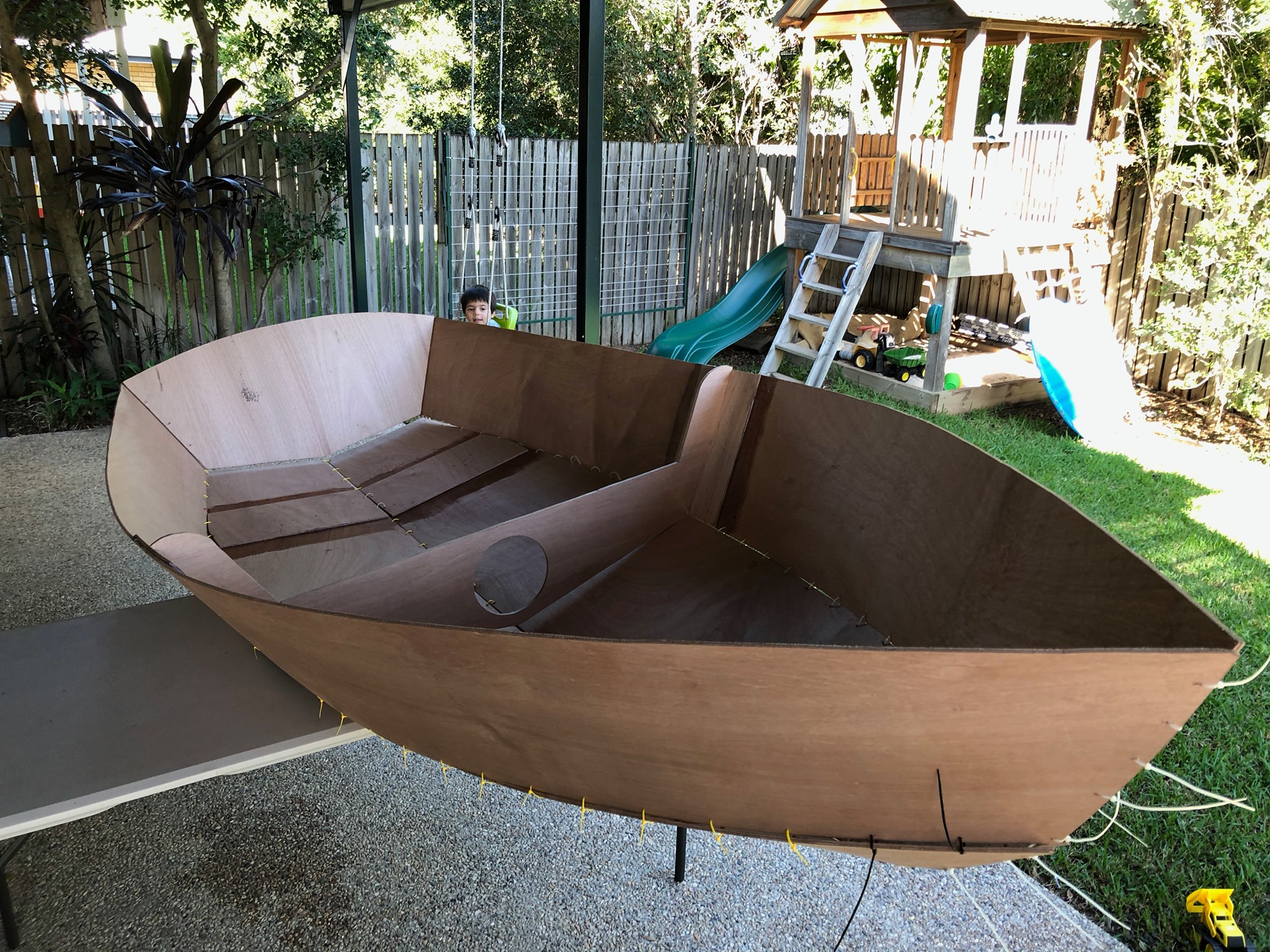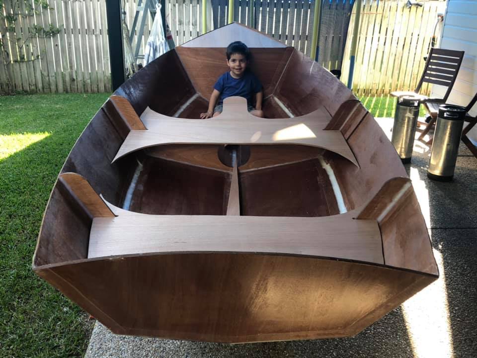 As a third year medical student in 2020, during coronavirus / COVID19 I was suddenly stuck with limited surgery study (only via Zoom) as all elective surgery was suspended. Finding myself with a lot of free time on my hands, I started building a boat with Ian, my three year old son! He was surprisingly helpful, loved drilling holes with me (pulling the trigger as I held the drill), inserting zip-ties, and loved painting.