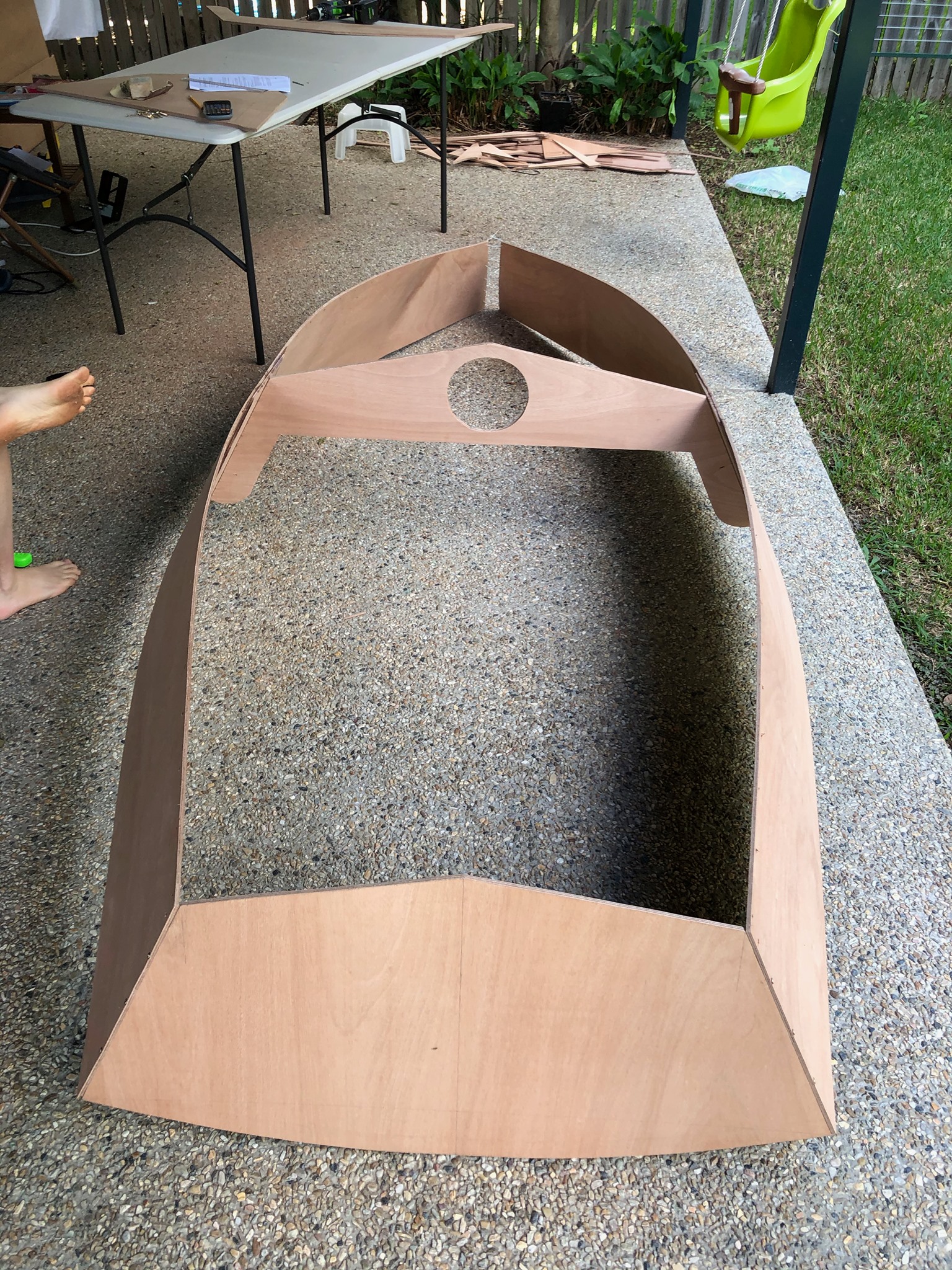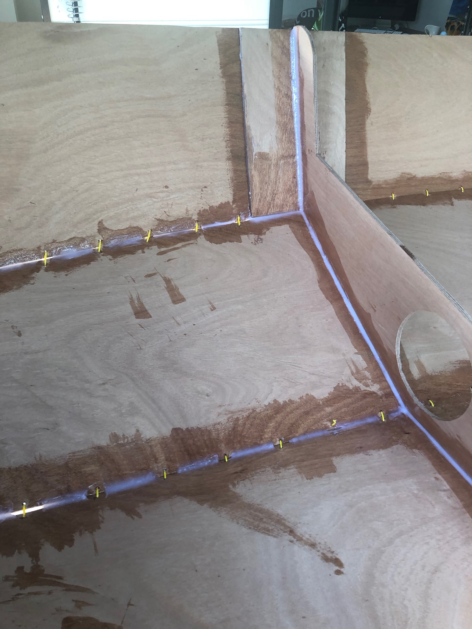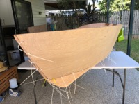 - 16th April 2020 - Drawing up onto plywood, cutting, and turning 8' of plywood into a 10' boat - Butt joins