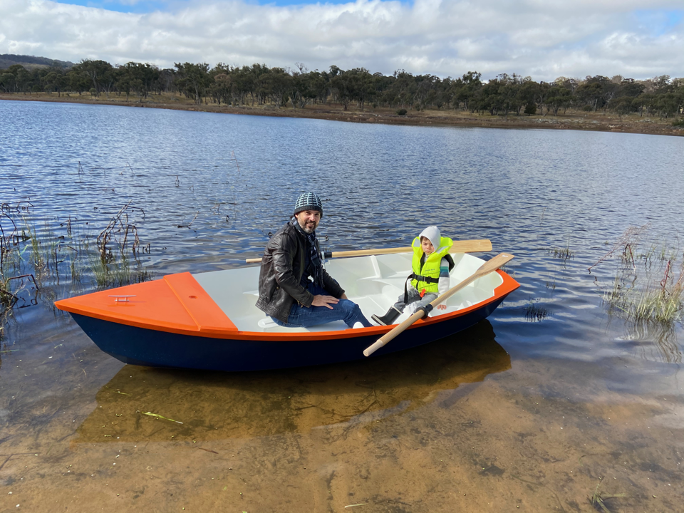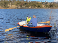 We had a lovely family day out, and Ian was very excited to launch his "Blippi Boat". He had a row with his grandfather 'Geppy' as well and had a lovely day. Performance wise, the boat rows very well and easily. It's a stable little boat and easily rowed with myself, Ian, and Geppy with freeboard to spare.
