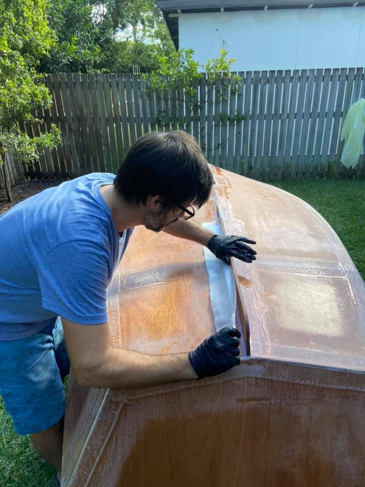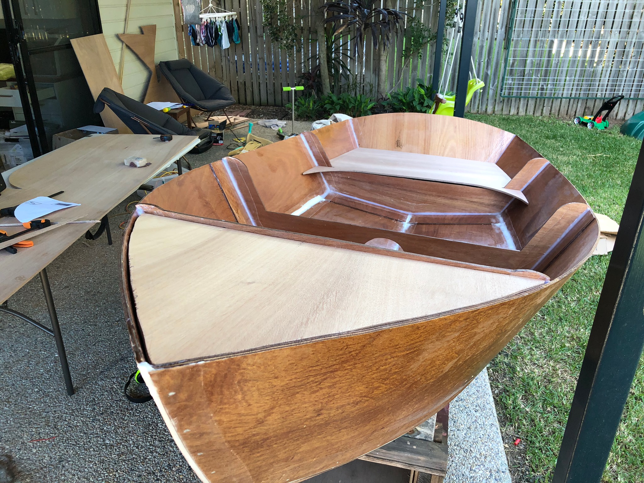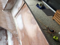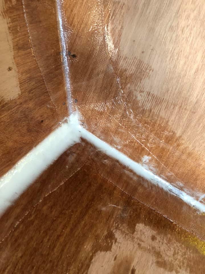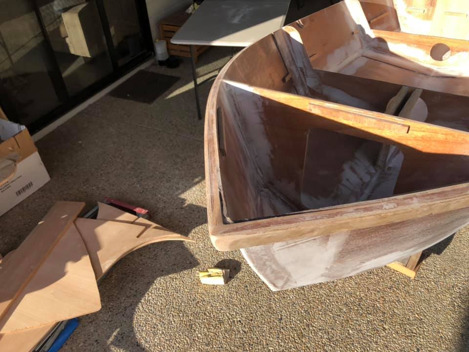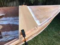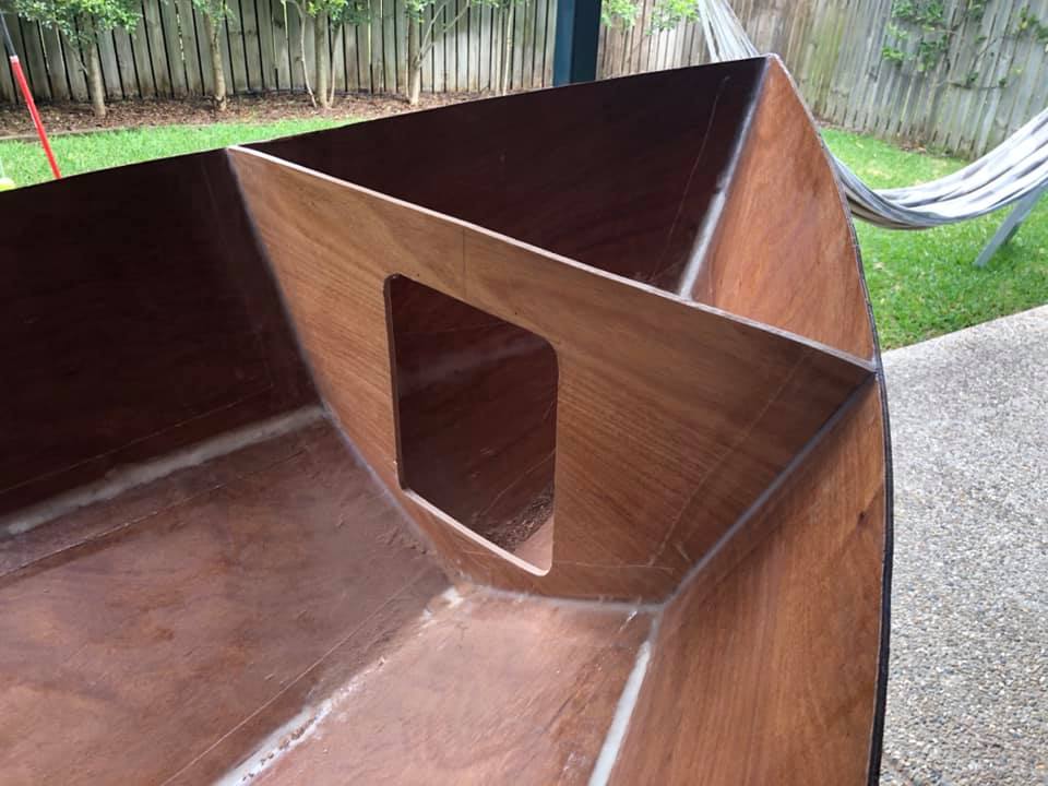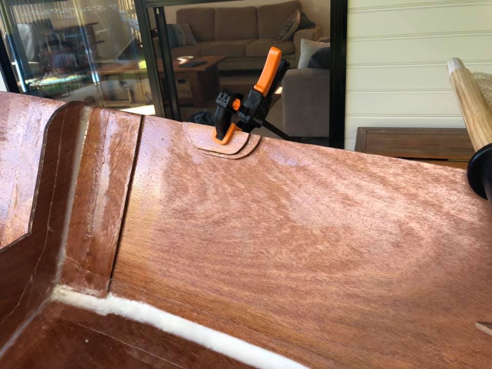 An aside for the glue nerds (I’m sure there’s some here): I’m using west system 105 with the slow 206 hardener, and it still goes off like a bomb when you mix in thickener to make a filleting or fairing compound. Brisbane weather isn’t great for epoxy, so you have to make quite a few small batches as you go.