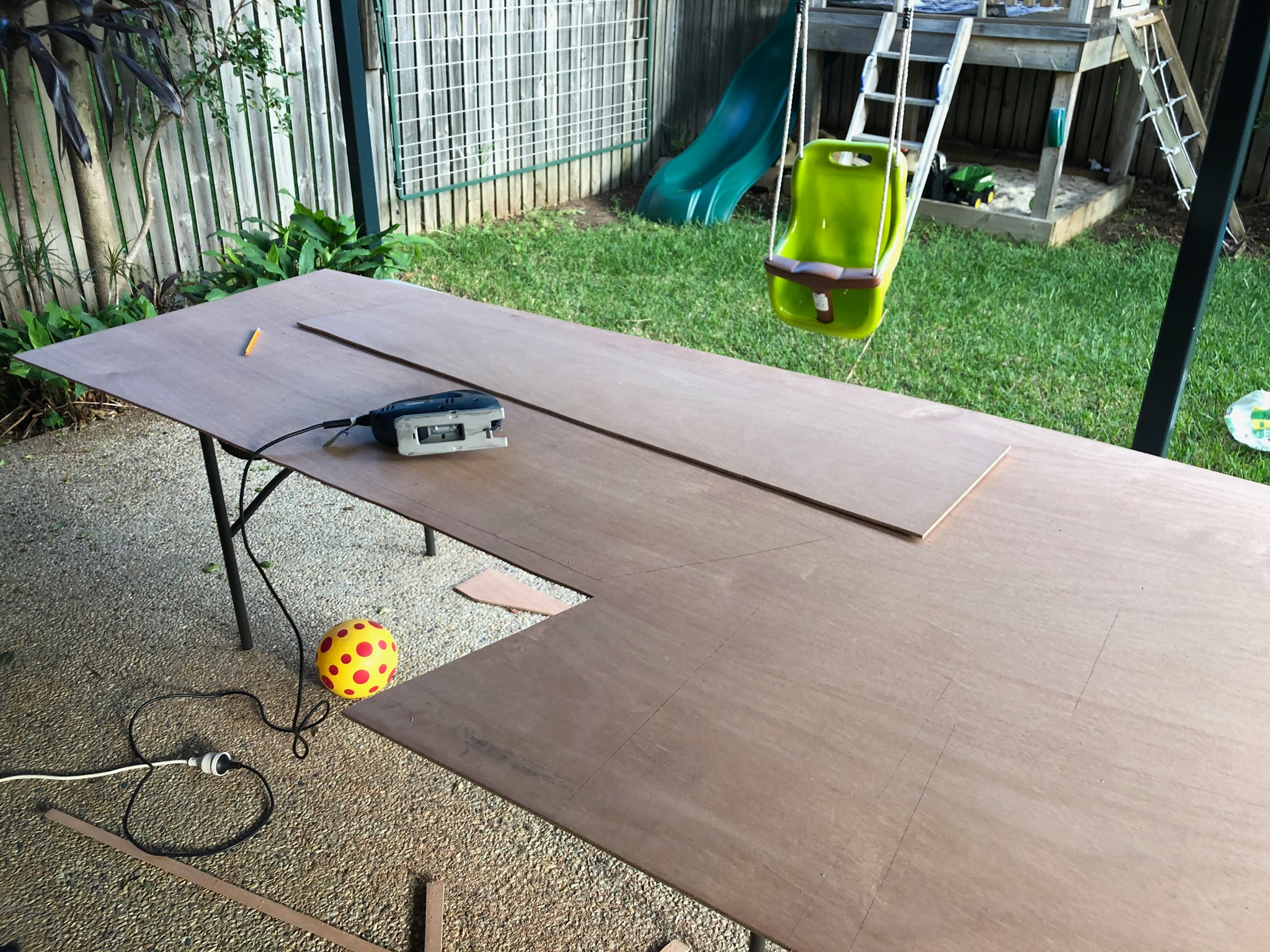 16th April 2020 - Drawing up onto plywood, cutting, and turning 8' of plywood into a 10' boat - Butt joins