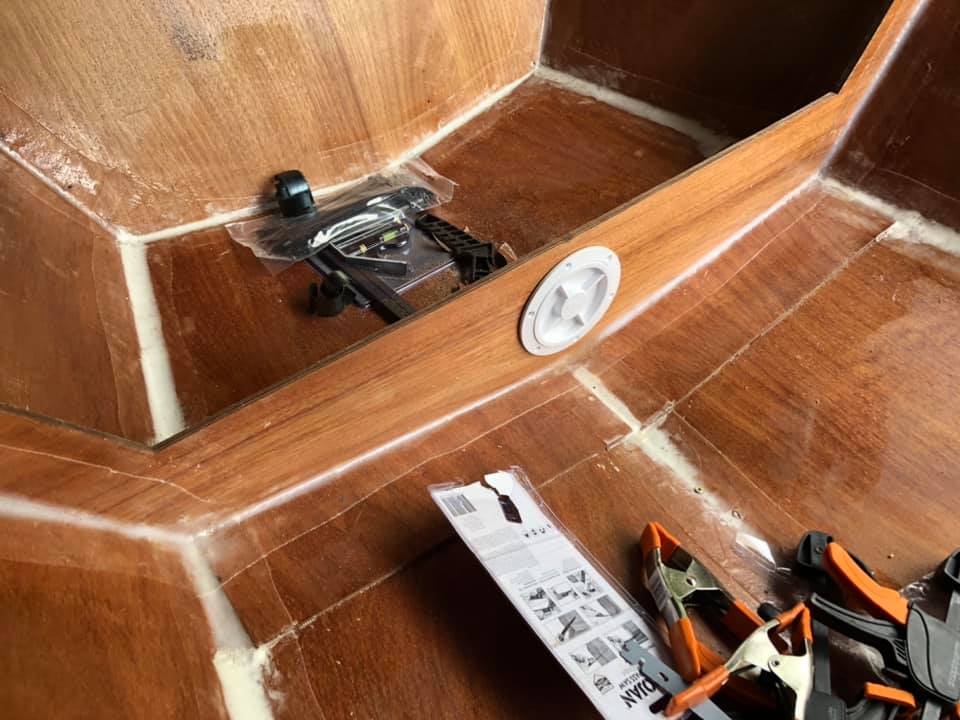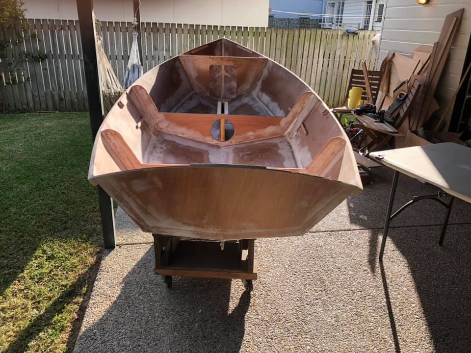 Next steps are: cut some holes for hatches, add some more glass to the bottom once the top of the daggerboard case has dried, and then finally install the seats!