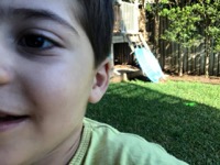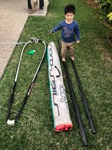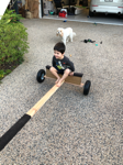 Ian wanted to hop in as soon as we got home from daycare! “I will sit here, and Mummy will sit here and Monty next to me and Daddy can sit over there and row”.