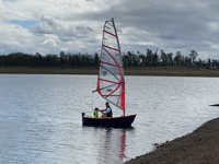 It sailed reasonably well with its oversized (5m2 windsurfing sail vs 3m2 gaff rig on the plan). The balance is a bit out compared to the usual bigger boats I was sailing pre-COVID – I could reasonably easily overpower the rudder and daggerboard and effectively change our heading by adjusting the mainsheet, but it was still eminently (and easily) sailable, even with a 3yo on-board!