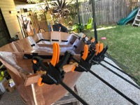 Making progress on the fiddly bits - middle seat (marking and cutting those curves was painful) and laminating the daggerboard case together as I couldn’t easily obtain the right side timber. It’ll be wrapped in fiberglass so it’ll be pretty tough by the time it’s finished.