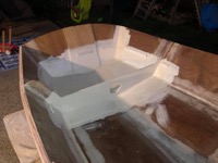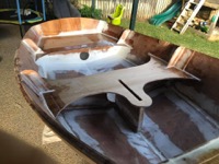 The skeg (helps the boat track straight when rowing) is also installed on the bottom (yet to be glassed) as are pads to screw on the rowlocks.