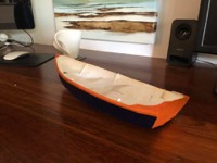 Scale model was created by Sarah so that Ian could design the colour scheme - which happens to be inspired by a children’s YouTube star called Blippi. I think it came out surprisingly tasteful actually! (The model is slightly different as it’s the rowing not sailing version so doesn’t have a foredeck).