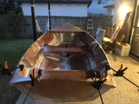 The inside has now been sealed as well. Once this dries I can get my table back to start cutting out the seats, foredeck, and centreboard.