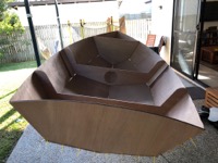 Seats are fibreglassed in! My textbooks still didn’t need to be opened though! 😉 Now it’s just finishing off with some knees (curved decorative bits to stiffen the transom-side joints), figuring out how to step a mast, more fairing and painting, and then just attaching hardware.